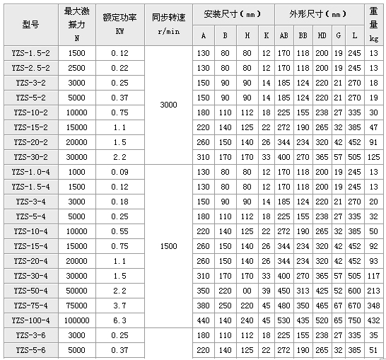 YZS系列振动电机是动力源与振动源结合为一体的激振源,振动电机是在转子轴两端各安装一组可调偏心块,利用轴及偏心块高速旋转产生的离心力得到激振力。振动电机的激振力利用率高、能耗小、寿命长、振动电机的激振力可以无*调节,使用方便,JZO/YZU/YZD/YZS等型号的振动电机为通用型振动电机。振动电机可以应用于一般振动机械,如:振动破碎机、振动筛分机、振动打包机、振动落砂机、振动造型机、振动打桩机、振动提升机、振动充填机、料仓的振动破拱闭塞装置等等。广泛的应用在水电建设、火力发电、建筑、建材、化工、采矿、煤炭、冶金、轻工等工业部门。